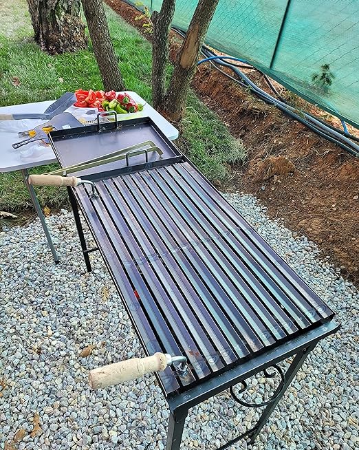 cm Oluklu lama Izgaralı Demir Mangal barbekü 75 cm geçmeli ayaklı portatif katlanabilir