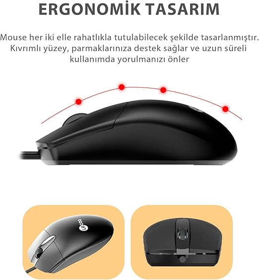 Ergonomik Tasarım: Klavye ve Mouse, tam olarak elinizin anatomik yapısına uygun olarak tasarlanmıştır. Kıvrımlı yüzey parmaklarınızı destekler ve uzun süreli kullanımda yorgunluğu önler.