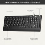 CM103 USB Kablolu Win/Mac Uyumlu Sıvı Dökülmesine Dayanıklı Sağ ve Sol Elle Kullanıma Uygun QWERTY Türkçe Dizilim Tam Boyutlu 1000DPI Optik Kompakt Fare Türkçe Q Klavye & Mouse Set Siyah