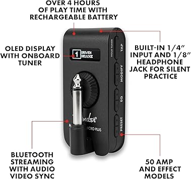 Mustang Micro Plus Kulaklık Amplifikatörü, Şarj Edilebilir Pil, Bluetooth Ses Akışı ve 50 Amper ve Efekt Modelleri, 2 Yıl Garantili