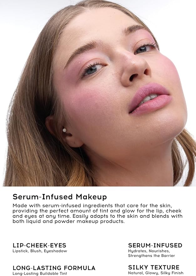Serum içeriği ile cilde bakım yaparken, dudak, yanak ve gözler için her an mükemmel miktarda renk ve ışıltı verir.
