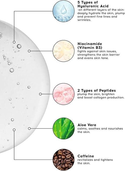 Beş çeşit hyalüronik asit ile yoğun ama ağırlık yapmayan nemlendirme sağlamaya yardımcı olur