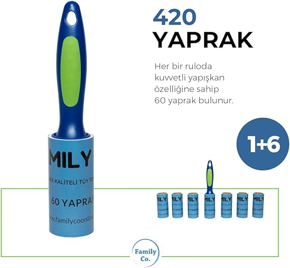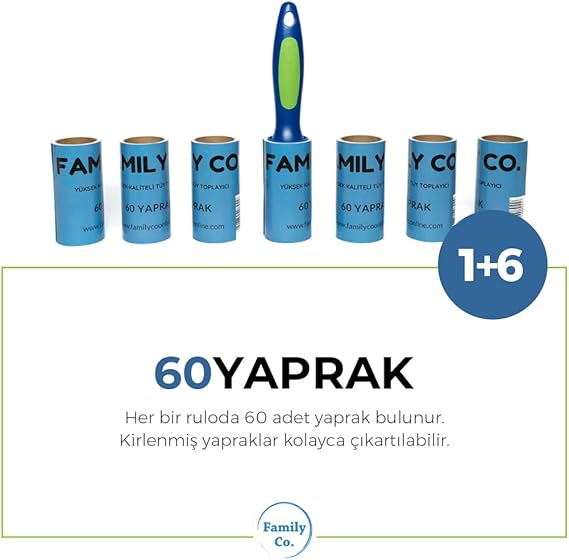 Co. Kedi Köpek Saç Kıl Tüy Toplayıcı Rulo 1 Rulo 6 Yedek Her Biri 60 Yaprak