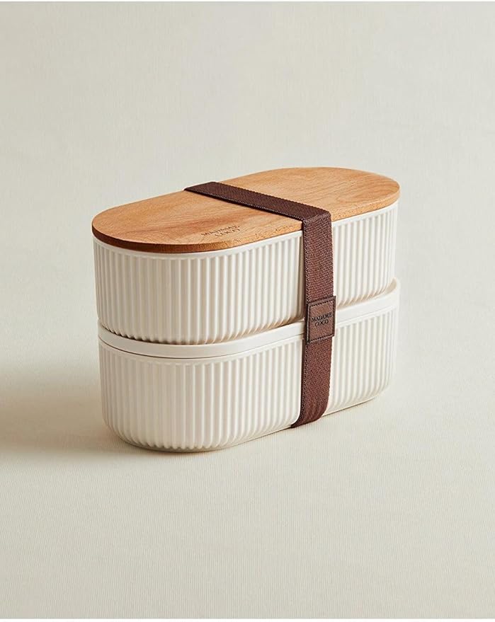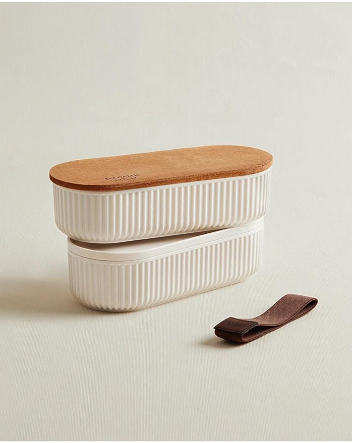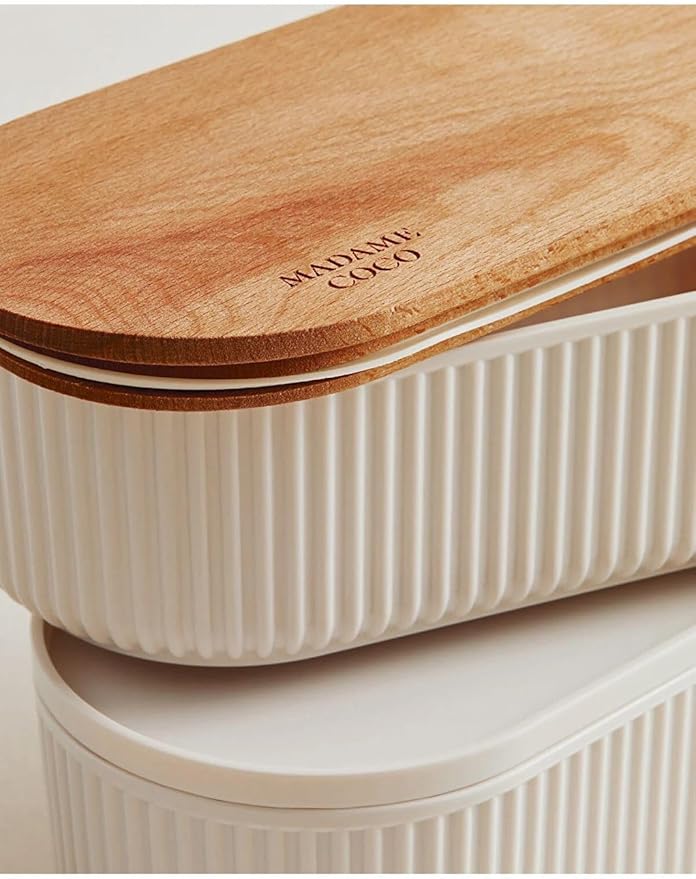 Coco Magou 2’li Ahşap Kapaklı Saklama Kabı, 1000 ml, Soft Ekru