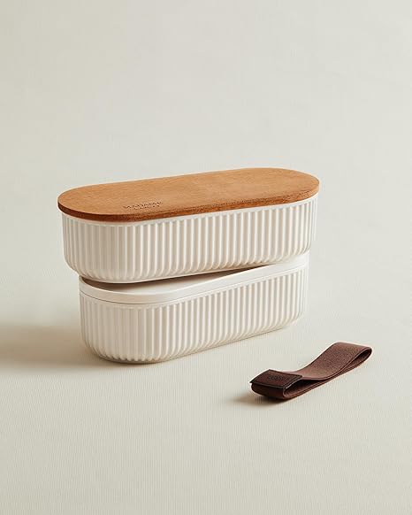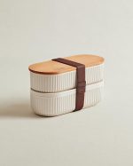 Coco Magou 2’li Ahşap Kapaklı Saklama Kabı, 500 ml, Soft Ekru