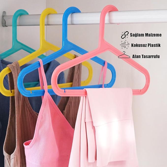 Çocuk Askısı, Elbise Askısı, Renkli Askı, Slim Askı (Standart, Adet, 24)