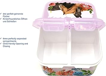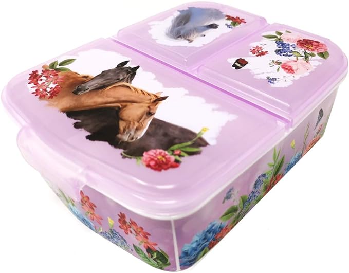 Çocuk beslenme kutusu, sandviç kutusu, bölmeli beslenme kutusu, bölmeli ekmek kutusu, anaokulu, plastik, BPA içermez (at atları)