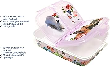Bölmeli çocuk ekmek kutusu – Ölçüler: Uzunluk 18 cm, Yükseklik: 5,5 cm, Derinlik: 13,5 cm. Yüksek kaliteli, gıda maddelerine uygun plastik malzeme – BPA içermeyen beslenme kutusu