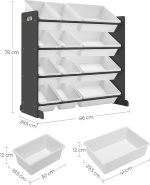 Çocuk Odası Rafı, Oyuncak Düzenleyici, Çocuklar için Ayakta Raf, Pp Plastikten Yapılmış 12 Saklama Kutusu, Çocuk Odası, Okul, Kreş, 86 X 26.5 X 78 cm, Koyu Gri-Beyaz Gkr04Gy