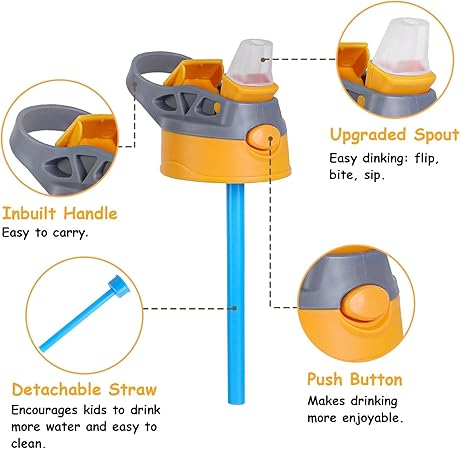 ✅【Açılır Pipet】Çocuk su şişesi, tek elle açılan bir pipete, ağız açıkken bile dökülmeleri önleyen %100 dökülmez bir valfe ve temiz içme için kir ve bakterileri dışarıda tutan koruyucu bir ağız kapağına sahiptir.