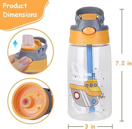 Çocuk Su Şişesi, 480ml Flip Pipetli Çocuk İçme Suyu Şişesi, Sızdırmaz Çocuk Su Şişesi, Taşıma Saplı ve Kolay Düğmeli BPA İçermeyen Su Şişesi, Okul ve Spor için (Cruise Ship)