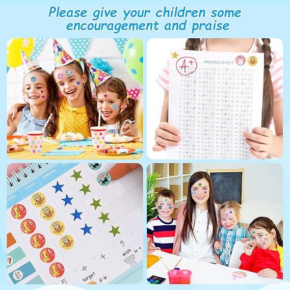 Geniş kullanım alanı: Çocukları olağanüstü performanslarından dolayı ödüllendirebilirsiniz. Çocukların ev ödevi, ev işi, soruları cevaplama vb. olsun, çocuklarınıza onayınızı göstermek için ödül çıkartmalarını kullanabilirsiniz. Çıkartmalar ders kitaplarına, kitaplara, masalara, duvarlara, tahtalara ve daha fazlasına yerleştirilebilir.