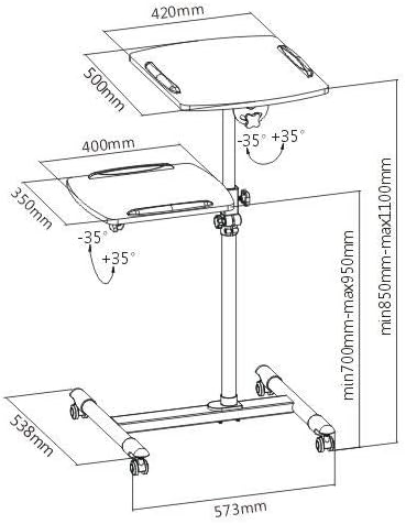 İki ayrı ayarlanabilir masa tablası ile Dizüstü bilgisayarınızı, Projeksiyon cihazınızı, şarj cihazınızı, Mouse ve daha fazlasını rahatlıkla kullanabilirsiniz