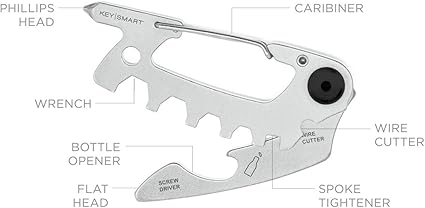 dahil bileşenler: Şişe Açacağı, Anahtar, Philips Başlı Tornavida, Düz Başlı Tornavida, Karabina, Çelik Kesici