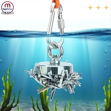 Çok Güçlü Deniz Mıknatısı – Fishing Magnet – Neodyum Daimi Çelik Mıknatıs – Halkalı Pot Mıknatıs – Nikel Kaplı – Paslanmaz – Kararma Yapmaz – Tuzlu Suya Dayanıklı MNS Magneteksan