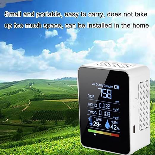 Çok İşlevli 5’i 1 Arada Karbondioksit Ölçer Dijital Sıcaklık ve Nem Test Cihazı Karbondioksit TVOC HCHO A Quali White 5’i 1 Arada