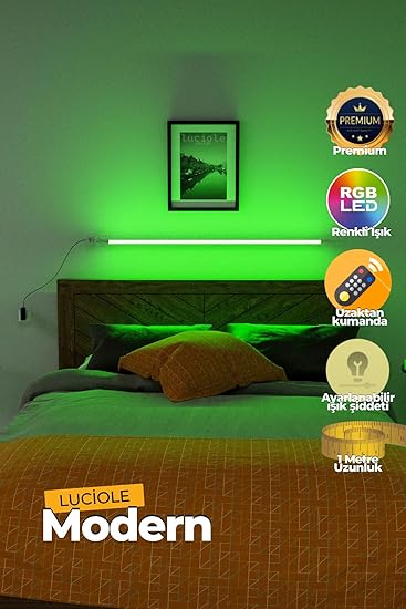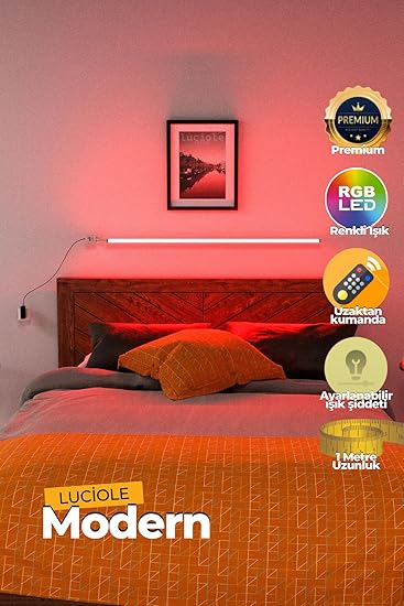 Çok Renkli Led Lambader abajur aplik lamba ışık Yapışkanlı 1 Metre Her Alana Uygun Uzaktan Kumandalı 16 renk