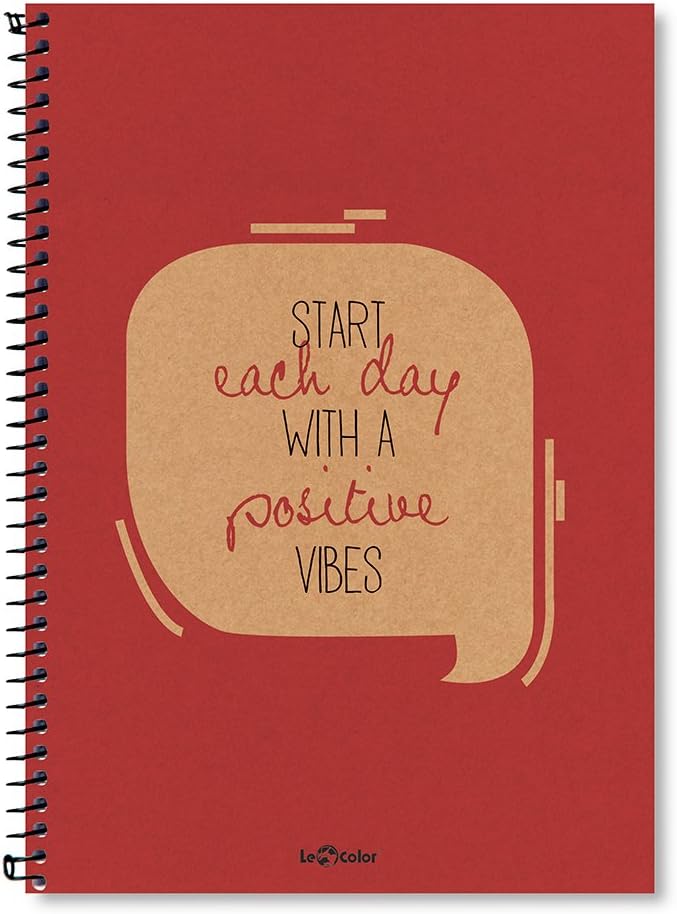 Color 2015075/3 Eco Kraft Sert Kapaklı, Spiralli, Sarı Kağıtlı, 200 Sayfa, Kırmızı
