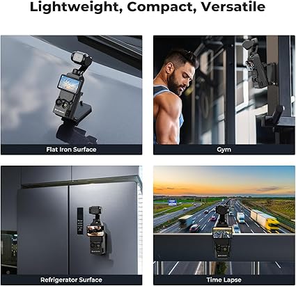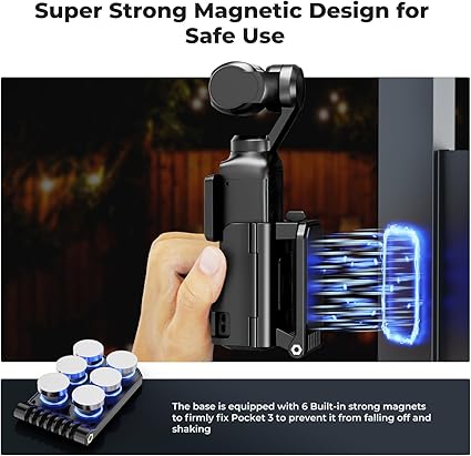 【Güçlü manyetik tutuş】 6 güçlü N52 neodim mıknatıs ile donatılmıştır, bu tutucu Pocket 3’ünüzün güvenli bir şekilde sabitlenmesini sağlar ve böylece yanlışlıkla düşmeleri veya sarsıntıları önler. Tabandaki kaymaz silikon dolgu, çalışma masasında, arabada, buzdolabında, spor salonunda vb. çekimlerinizin sabit kalmasını sağlar