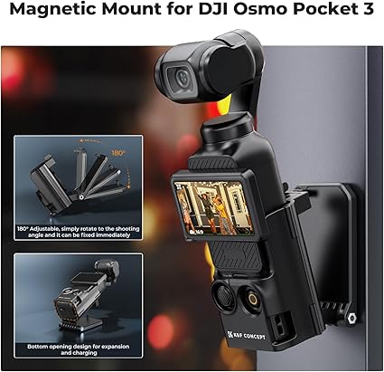 【Gelişmiş çekim olanakları】DJI Osmo Pocket 3 manyetik montaj güçlü mıknatıslıdır, açısı ayarlanabilir, taşınabilir ve kompakttır ve kamera üzerinde tam kontrol sağlar, çekim perspektiflerini genişletir ve kayıt sırasında destek sağlar