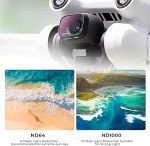 【ND filtre fonksiyonu】 Bu filtre seti deklanşör süresini 2/3/4/5/6/10 diyafram kademesini yavaşlatır. Mini 3 Pro, daha büyük diyafram açıklığına sahip bir objektife sahiptir, videolar için hareket bulanıklığı veya fotoğraflar için uzun süreli pozlamaları korumak gerektiğinde ND filtresini daha iyi bir deklanşör süresi kontrolü için kullanabilirsiniz