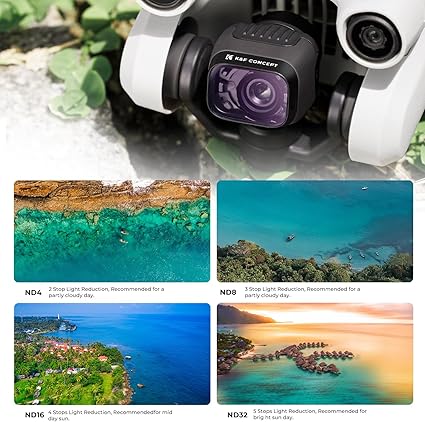 Concept Mini 3, Mini 3 Pro ND Filtre, 6 Adet ND4, ND8, ND16, ND32, ND64, ND1000 Filtre DJI Mini 3 Pro, Mini 3 ile Uyumlu (Aksesuar: 1 x İniş İskeleti) (Plastik Versiyon)