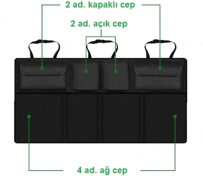 Concept Oto Bagaj Düzenleyici Toparlayıcı Araç Organizer Araba İçi Fileli Eşya Düzenleyici 8 Cepli Çantası