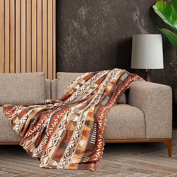 CONCEPT SoftMicro Boho Etnik Desenli Mikrofiber Koltuk Örtüsü ve Şalı, Kaymaz Toprak 180×300 cm