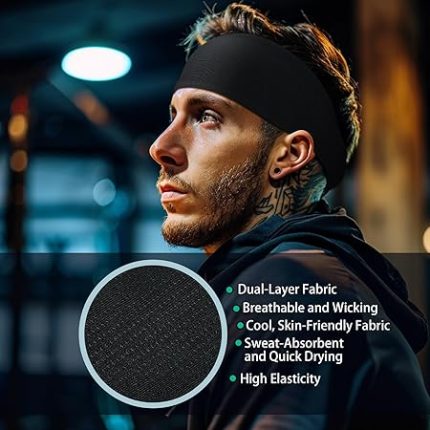 ve erkekler için spor alın bantları, antibakteriyel ter bandı, alın bandı, elastik, kaymaz, jogging, koşu, fitness, yoga, bisiklet, basketbol için