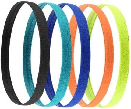 Spor alın bandı, ince, 5 adet kaymaz elastik alın bandı, spor saç bandı, ince, kadın, erkek, kız çocuk, çocuklar için, 5 renk