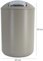 【BOYUT】: Ölçüleri 20 x 30 cm olan bu çöp kovası, 6,4 litrelik büyük bir kapasiteye sahiptir. Mat yüzeyli plastik malzemesi ve krom görünümlü zarif kapak tasarımı, banyonuza asil bir dokunuş katar.