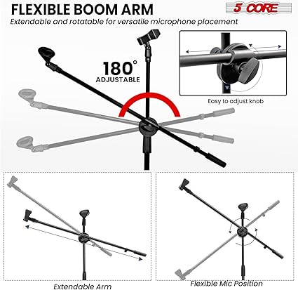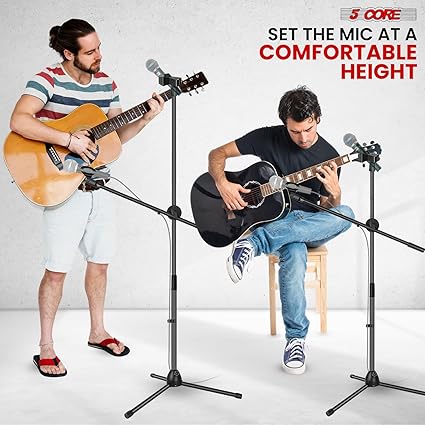 Core Mikrofon Standı Zemin Evrensel Yüksekliği Ayarlanabilir Tripod Mikrofon Standları 2 Mikrofon Tutar w Uzayan Teleskopik Bom Kolu Katlanabilir Taşınabilir Sahne Üzerinde Stüdyo için Siyah – MS