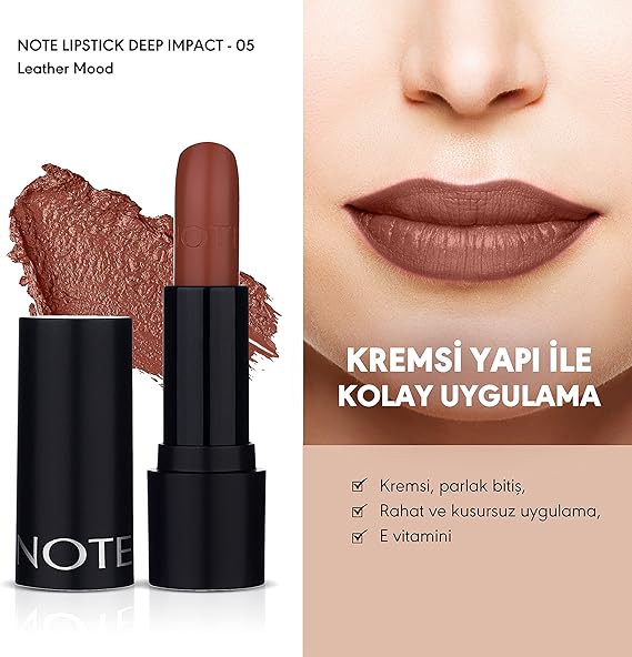 Cosmetics Deep Impact Lipstick 05 Leather Mood Kremsi Dokulu Yarı Parlak Ruj, Kahverengi