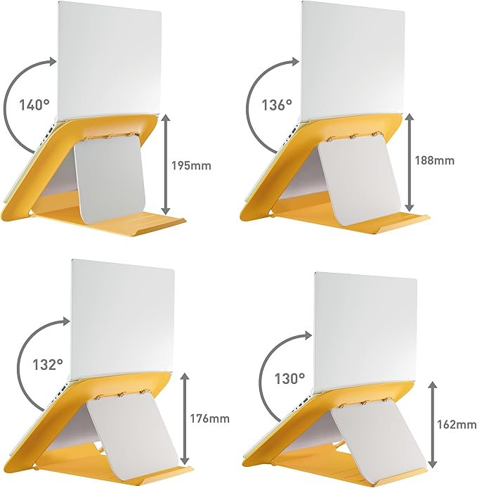 Gelişmiş görüş açısı: 4 farklı pozisyona sahip dizüstü bilgisayar tutucu – İş yerine göre mükemmel izleme pozisyonunu seçerek vücut duruşunuzu iyileştirin