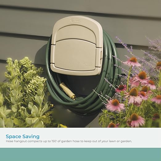 Yerden tasarruf sağlar: Hortum askısı, 45,72 metreye kadar bahçe hortumunu sıkıştırarak çim veya bahçenizden uzak tutar
