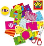 Kesme kılavuz çizgileri olan 16 adet resim ve bir süper güvenli makas (saç veya tekstil kesmez) içerir