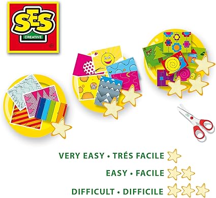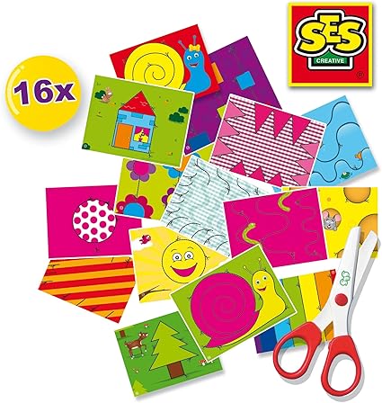 Kesme kılavuz çizgileri olan 16 adet resim ve bir süper güvenli makas (saç veya tekstil kesmez) içerir