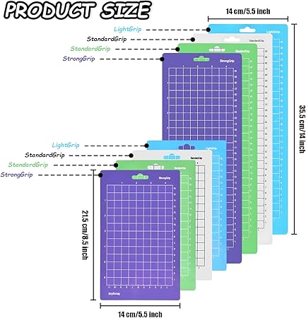 【Mükemmel set】YAOSHENGUP size Joy için 8 kesme matı sunar, bunların arasında hafif tutuş matlı 4 paket 30 x 4,5 inç mat, standart tutuş matı, güçlü tutuş matı ve 4 paket Light Grip Mat, standart tutuş matı, Strong Grip mat 6,5 x 4,5 inç ölçülerinde, Joy makineleri ile mükemmel uyumludur. Farklı malzemelerin ve el işi projelerinin kesilmesi için çoğu ihtiyacınızı karşılayabilir. Tam doğru boyut sayesinde mükemmel bir yedek ürün. (Bir kazıyıcı ile birlikte teslim edilir)