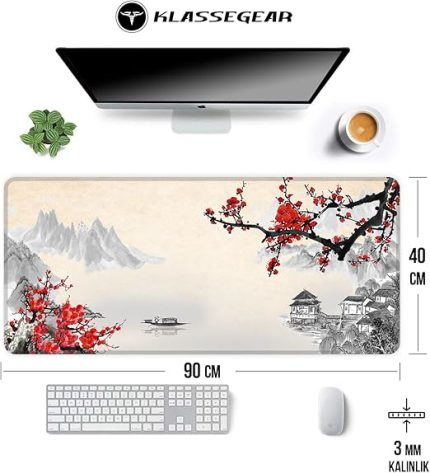 Pro – 10 Farklı Model Dikişli Kenar 90×40 cm Oyuncu Gaming Mouse Pad (Cherry Blossom, 90×40 cm)