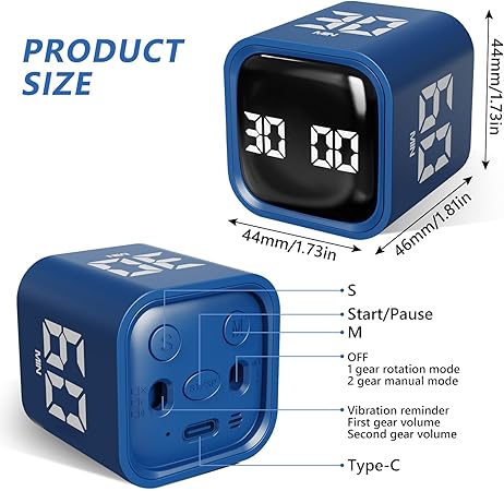 Cube zamanlayıcı, döndürülebilir Pomodoro zamanlayıcı, 5/10/30/60 dakika ve kişisel geri sayım, titreşimli dijital yumurta saati, ayarlanabilir sesli kısa süreli çalar saat, çocuklar, mutfak