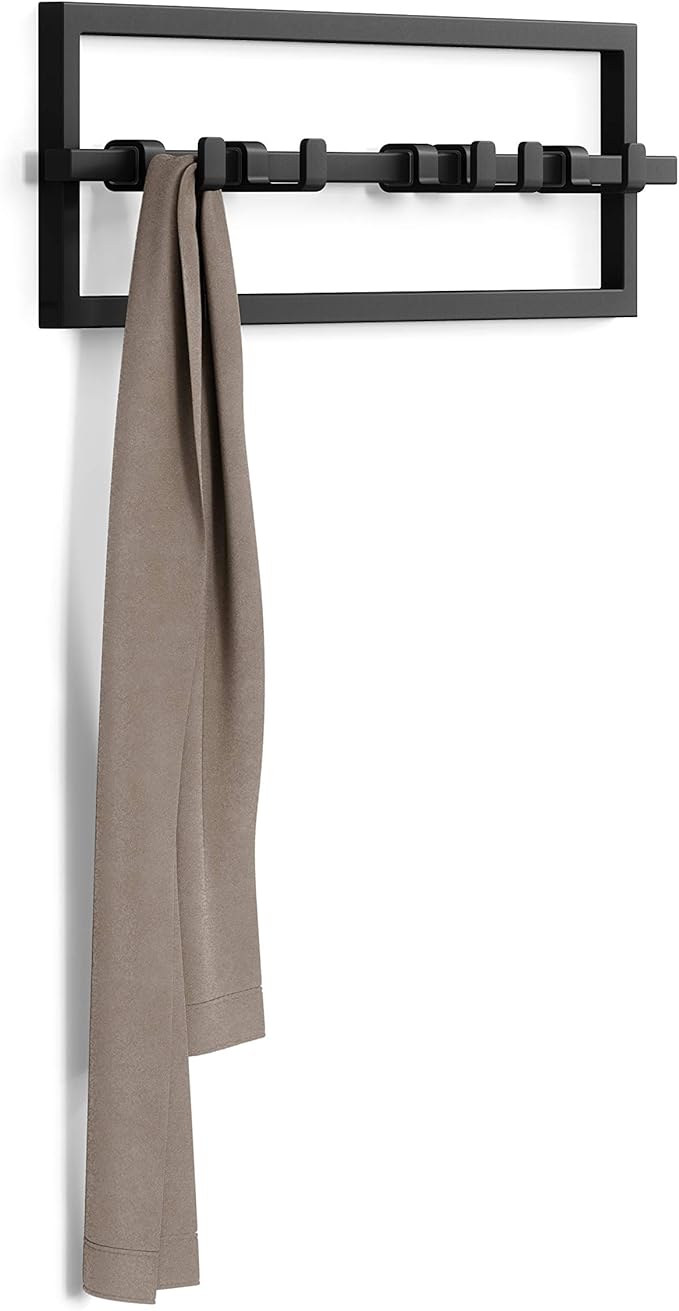 Cubiko Duvara Monte, Modern, Şık, Yer Tasarruflu Askı, Kaban, Eşarp, Cüzdan ve Daha Fazlasını Asmak için Geri Çekilebilir Kancalı Askı, 5, Siyah