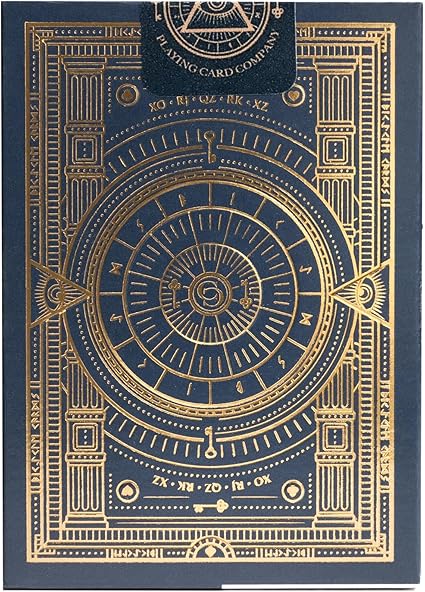 Özel tasarım kutu, resimli kartlar ve kart sırtları, lüks altın folyo ve kart kutusu üzerinde kabartma ve destedeki lacivert ve altın tasarımlara sahiptir