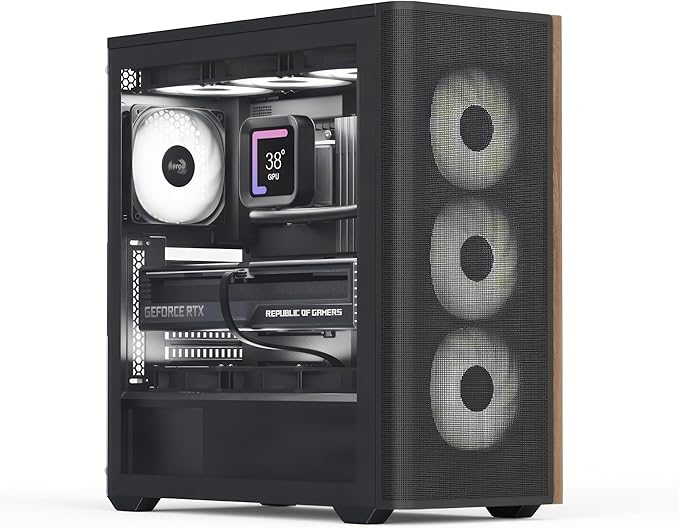 D501A Orta Kule Kılıfı, Ahşap Aksanlı Mesh Ön, 360mm Radyatör Desteği, 11 Fan Yuvası, 400mm GPU, ATX/m-ATX/mini-ITX, Manyetik Toz Filtreleri, SPCC Çelik Konstrüksiyon, Moda PC Yapısı, Siyah