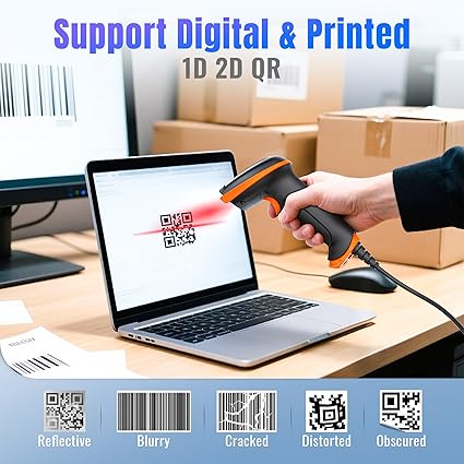 D5100Y Barkod Okuyucu – USB Kablolu, 1D ve 2D QR Kod Okuma, Tak ve Çalıştır, Ergonomik Tasarım, Anti-Şok Silikon, IP54 Toz ve Su Koruma, Çoklu Dil Destekli Barkod Tarayıcı