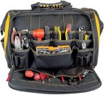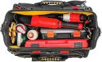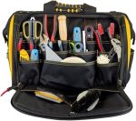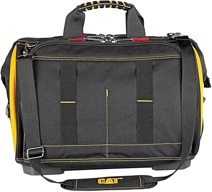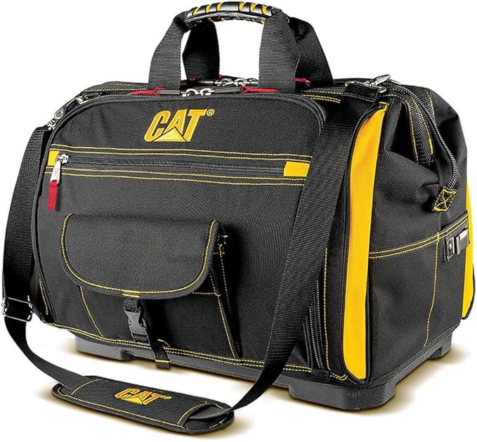 CAT 18” geniş ağızlı, çok bölmeli ağır hizmet tipi alet takım çantası maksimum alet taşıma kapasitesi için toplam 56 cep ve geniş düz ve düzenli bir iç alana sahiptir