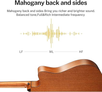 Tam boy 41 inç dreadnought cutaway gövde, üst perdelere erişimi kolaylaştırır, tüm müzik tarzları için uygundur Donner solak akustik başlangıç gitarı, pürüzsüz klavyesi ve C şekilli sap profili ile rahat çalım sunar ve oldukça dayanıklıdır.