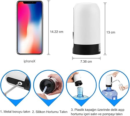Damacana Su Pompası – USB ile Şarj Edilebilir, Otomatik Tek Motorlu Su Pompası, Taşınabilir , Damacana Su Çekme Cihazı