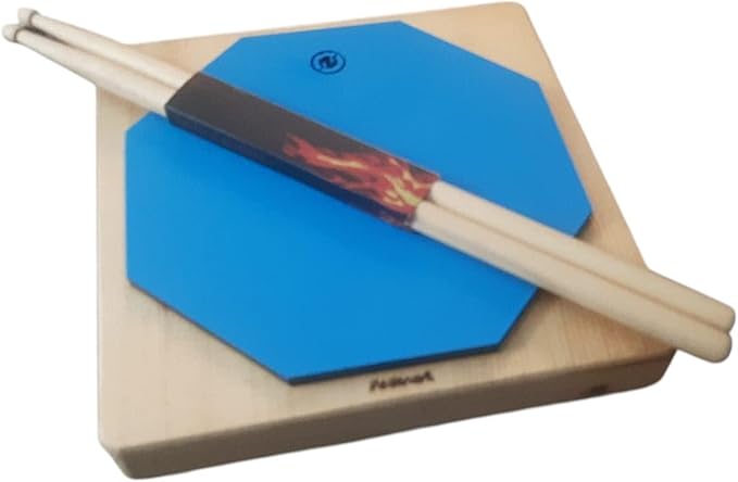 Davul Çalışma Pedi, Ahşap Taban ve Mavi Silikon Pad, Baget Seti 25x25x4 cm Büyük Boy