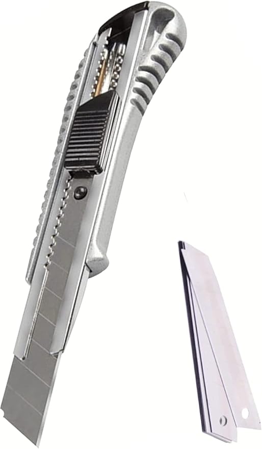 Dayanıklı alüminyum Gövde 18MM Profesyonel Falçata Bıçak +10 ADET YEDEK MAKET BIÇAK (Maket Bıçağı)