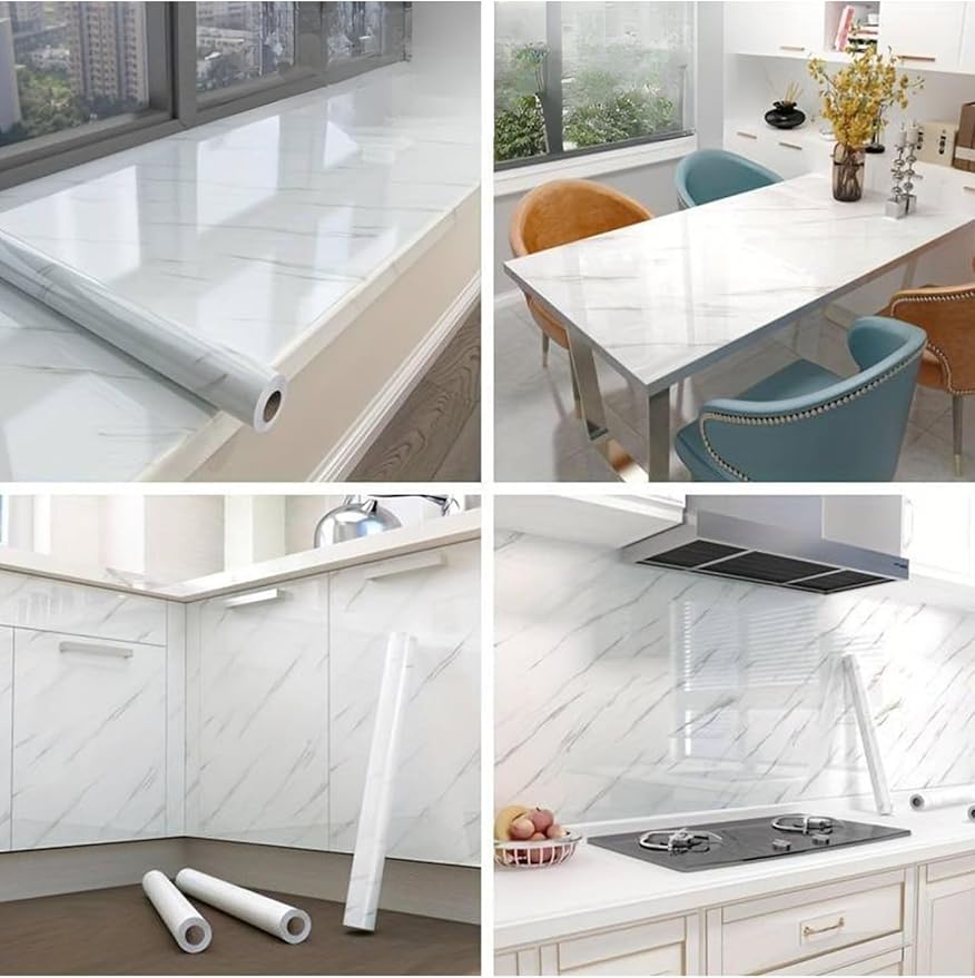 Mermer desenli yapışkanlı folyo ürünüyle birlikte evinizde şık ve modern bir görünüm sağlayabilirsiniz.